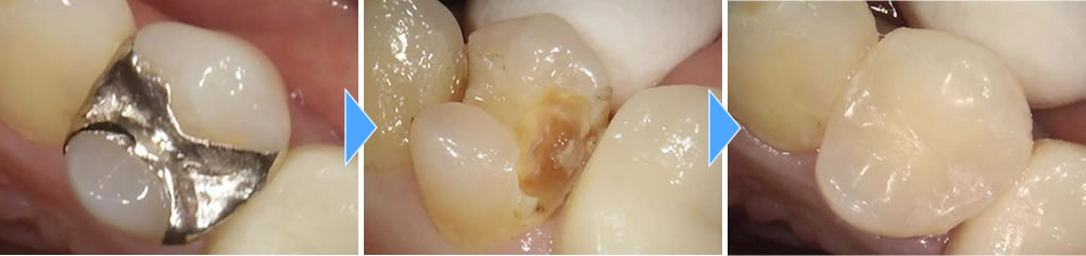 銀歯が外れた部分をセラミックインレーで修復した症例