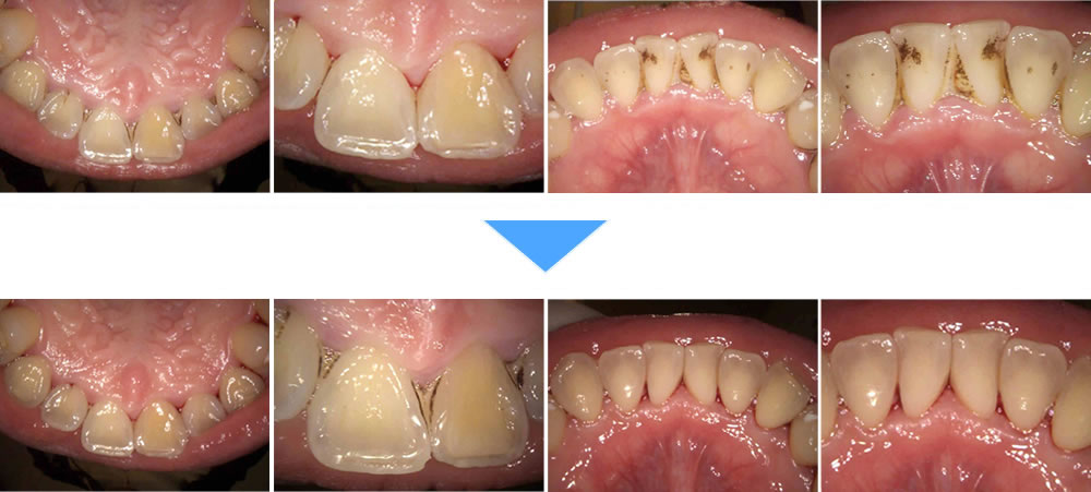 歯周病治療後にエアフローで歯の着色を除去した症例
