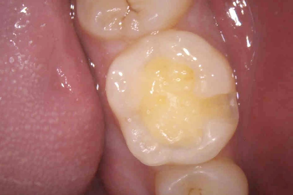 自覚症状はありませんでしたが、過去に他院で治療をしたレジンの溝から二次むし歯が確認できたため、治療をすることになりました。