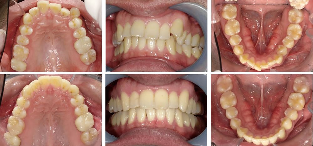 こちらの患者さまは前歯のガタツキ、全体的な歯並びが気になるという事で矯正治療を行いました。結果、綺麗な歯並びになり、満足していただく事ができました。