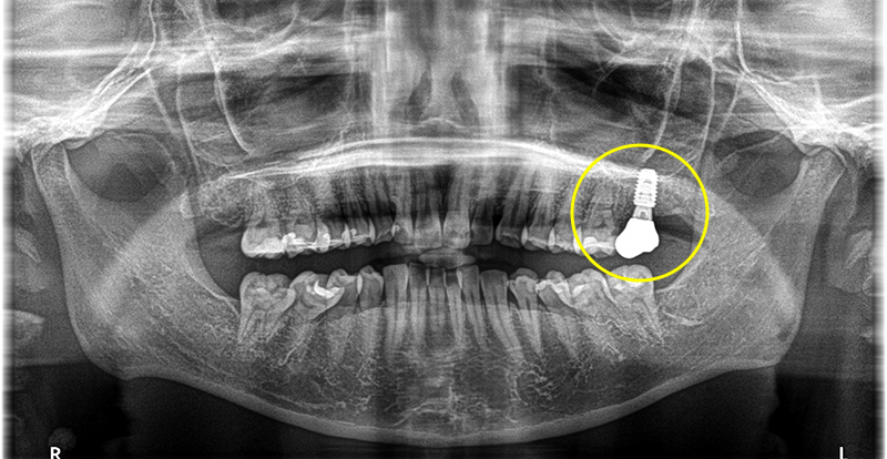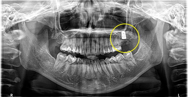 左上一番奥の歯が根破折で抜歯をインプラントで修復した症例