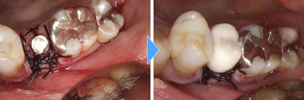 患部を縫合した後、即日で仮の歯を作って咬合を回復しました。
