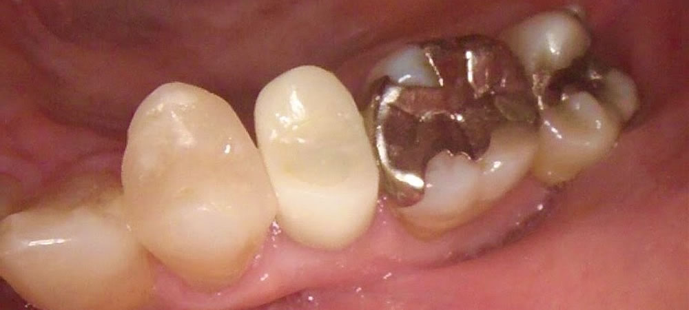 歯が痛いとの主訴で来院された患者さまです。昔に入れていた金属の被せ物を除去したところ、歯の根が割れていたので、治療方針を説明し、患者さまはインプラント治療を選択されました。