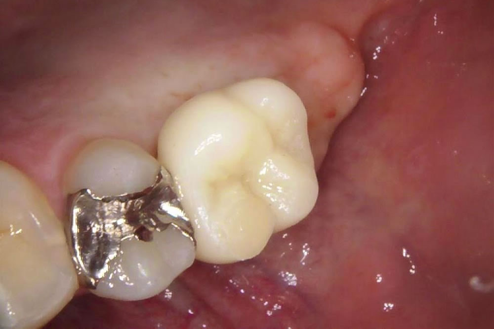 今回は、スクリューで上部の歯を止める形で完了しました。結果、自然な歯になり、1本にはなりますが、奥歯での咬合の回復を行う事ができました。