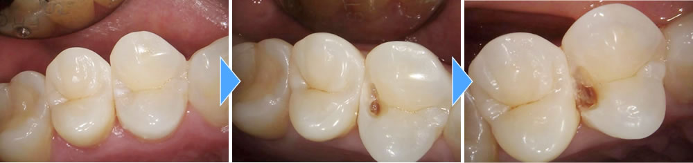 歯と歯の間の発見しづらい虫歯を治療していきました。通常は見逃しがちな虫歯です。まず虫歯を綺麗に取り除きます。
