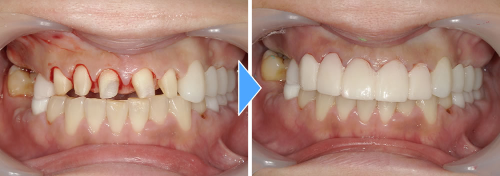 見た目の悪い前歯をセラミッククラウンで修復した症例