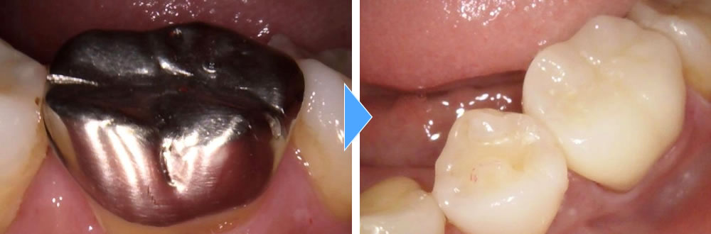 銀歯のかぶせ物を除去しセラミッククラウンで修復した症例