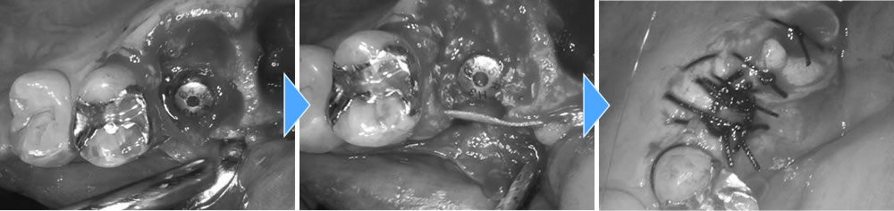 ほっぺた側の骨が無くなっていましたが、しっかりと骨を作る事で歯茎の下がりを最小限に抑えることができました。