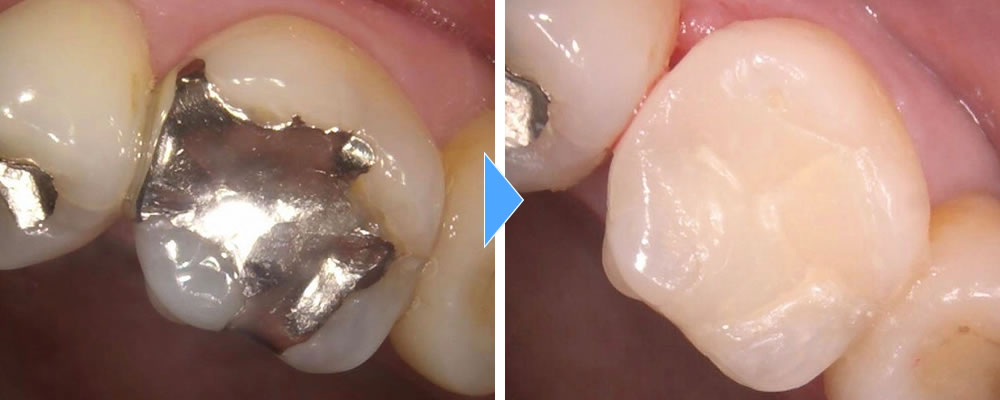金属のつめ物を取り除きセラミックで修復した症例