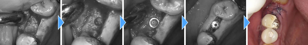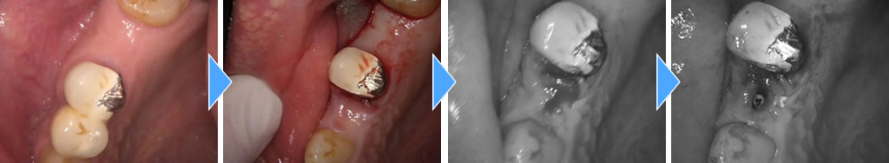 また、奥の歯はCT写真にて骨が弱っていたため、しっかりと歯茎を切開し、骨の状態を確認しながら施術を行っていきました。