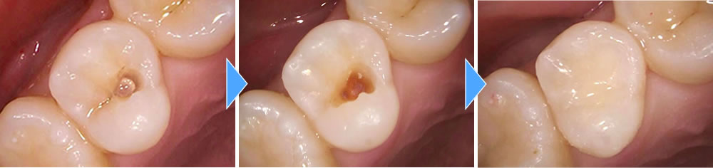 虫歯を除去し、強化プラスチックにて綺麗に補修しました。周囲歯とも調和した自然な仕上がりになりました。