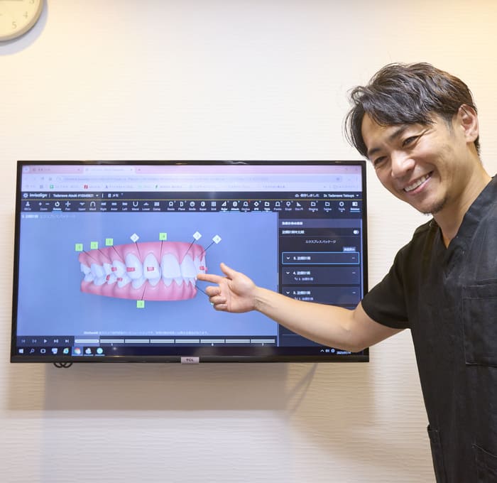 「治療の椅子に座ったけれど、結局自分の口の中がどうなっていて、何をされているのかよく分からなかった」というご経験はありませんか。 当院ではそのような患者様の不安や疑問を解消するため、口腔内カメラを用いた「視覚的な説明」を重視しています。 先端に小型カメラが付いたペン型の装置で、ご自身のお口の中の状態を撮影し、目の前にあるモニター画面に大きく映し出します。 普段ご自身では見ることのできない、歯の裏側や奥歯の状態、虫歯の進行具合、歯石が付着している様子などを、ご自身の目で直接ご確認いただくことができます。 これにより、現在のお口の状況やなぜその治療が必要なのかについて、より深くそして直感的にご理解・ご納得いただくことが可能となります。 また、治療前と治療後の写真を比較してきれいになった状態をご自身の目で確認することは、治療への満足度を高めるだけでなく、今後の予防に対するモチベーションを高める良いきっかけにもなると考えています。