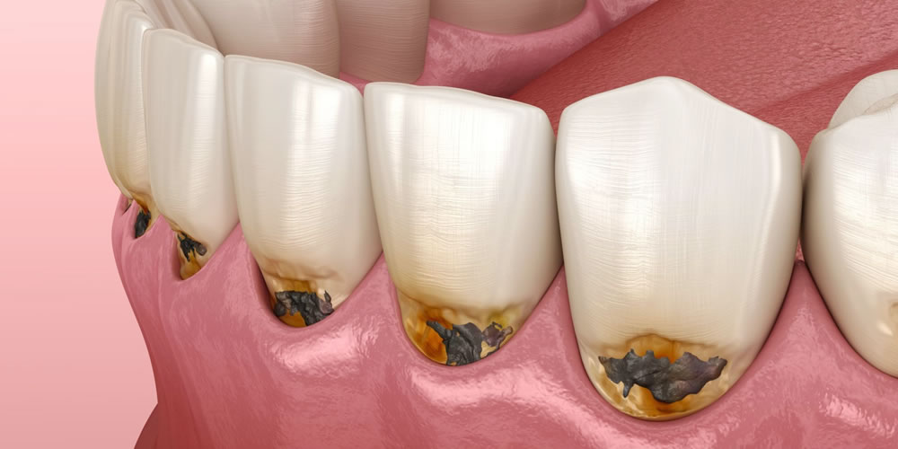 歯周病は歯周病菌の感染によって生じる炎症性の歯科疾患です。歯茎と歯の隙間に溜まった汚れによって細菌が繁殖すると、歯周組織に炎症が起こり、歯茎が下がってしまいます。歯周病によって歯茎が下がると、歯根面が露出するため、根面う蝕が生じやすくなります。根面う蝕を予防するためには、歯周病を発症・進行させないことが重要です。