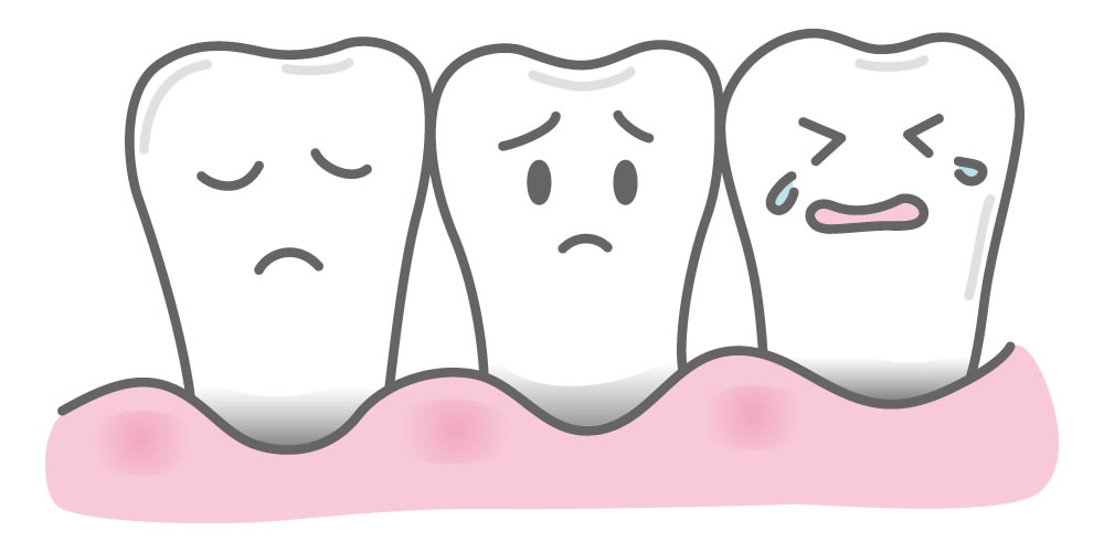 歯肉退縮が起こる一番の原因は歯周病です。口腔内が不衛生になると、歯と歯茎の隙間に歯周病菌が繁殖するため、歯茎が炎症を起こし、少しずつ歯茎が退縮していきます。歯周病は重症化すると、歯茎や歯を支える骨(歯槽骨)が溶かされて、最終的には歯が支えられなくなり、抜け落ちてしまいます。